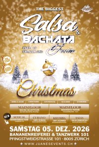 Am Samstag 05. Dezember 2026 erwarten wir Euch mit aussergewöhnlichen Shows, Entertainment und Party auf 5 Dancefloors, unsere internationalen DJs bieten das Beste aus Salsa, Bachata, Cuba, Kizomba in 2 geräumigen Clubs. Um die Weihnachtszeit aufzupeppen, bieten wir ein Buffet mit Schoggibrunnen kombiniert mit verschiedenen Pralinen und Snacks für euch alle.